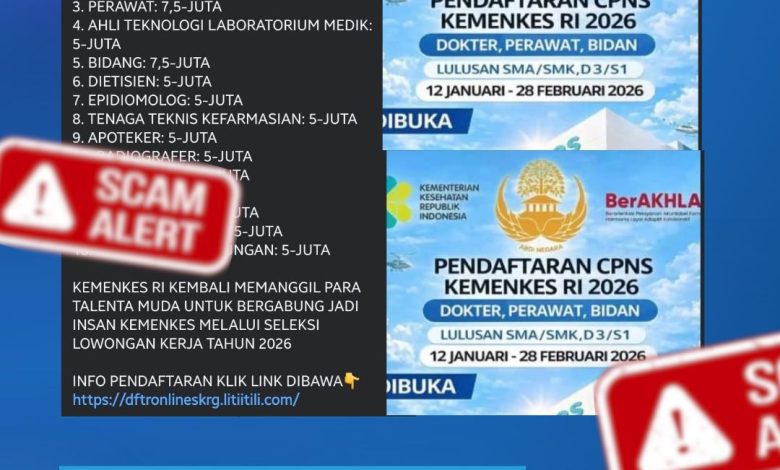 Unggahan tersebut mencantumkan klaim pembukaan seleksi Kemenkes 2026, daftar tenaga kesehatan, besaran penghasilan, hingga tautan pendaftaran yang tidak berasal dari kanal resmi pemerintah. BKN memastikan bahwa seluruh proses rekrutmen ASN, baik CPNS maupun PPPK, hanya dilakukan melalui mekanisme nasional yang terintegrasi dan diawasi langsung oleh BKN.