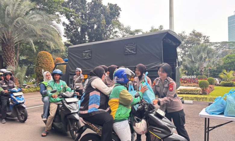 Polwan Polda Metro Jaya Ajak Ojol Tertib Lalu Lintas di Program Jum’at Peduli