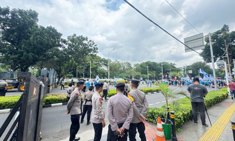 Brimob Polda Metro Jaya Hadir Berikan Pelayanan pada Aksi Penyampaian Aspirasi PERDA KSPI di Monas
