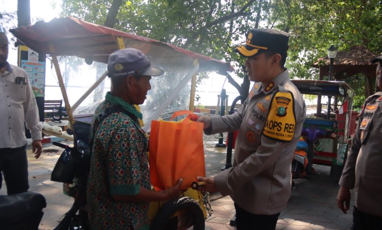 Kapolres Kepulauan Seribu Gelar Jumat Peduli di Pulau Harapan, Bagikan Sembako untuk Nelayan dan Pengemudi Bentor