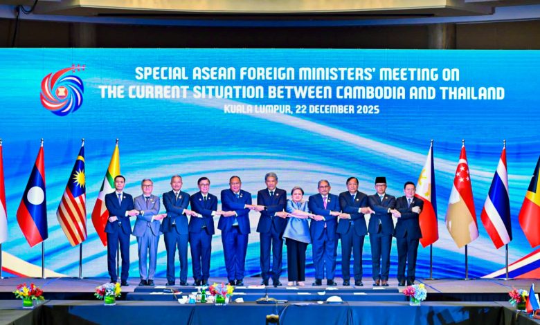 Malaysia, mimbar.co.id — Menteri Luar Negeri RI, Sugiono menghadiri Pertemuan Khusus Menteri Luar Negeri ASEAN mengenai Situasi antara Kamboja dan Thailand di Kuala Lumpur (22/12). Pertemuan diselenggarakan untuk membahas situasi terkini perbatasan Kamboja-Thailand yang menjadi perhatian bersama, sejak eskalasi pada 8 Desember 2025.