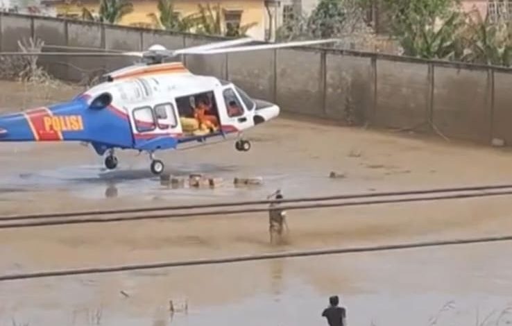 Meski Dengan Risiko Pendaratan, Helikopter Poludara Baharkam Polri Berhasil Dropping Logistik Bantuan ke Aceh Tamiang