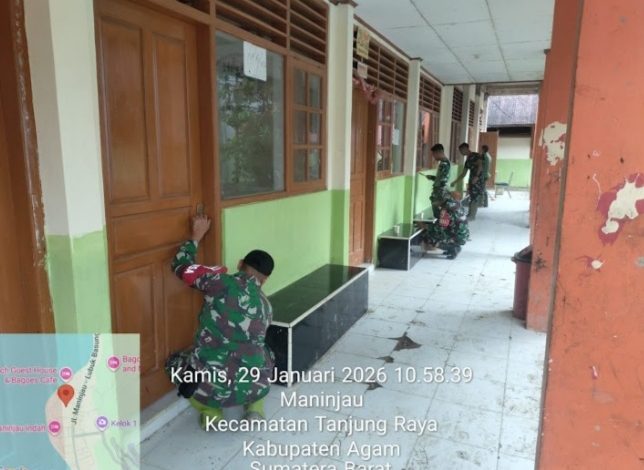 Salah satu lokasi yang menjadi fokus kegiatan pembersihan kali ini adalah SMP Negeri 1 Maninjau, Kecamatan Tanjung Raya, Kabupaten Agam. Di sekolah ini, prajurit TNI bersama warga membersihkan sisa material pascabencana sekaligus memperbaiki kerusakan ringan sejumlah fasilitas sekolah.