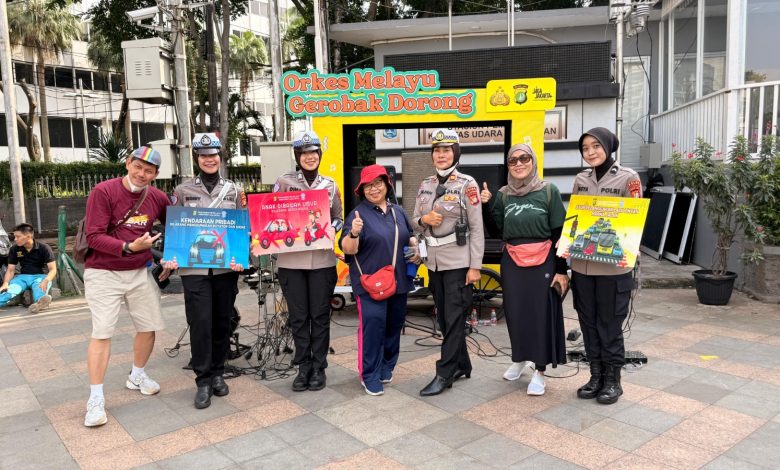 Pentas Seni Orkes Melayu Gerobak Dorong Meriahkan CFD di Bundaran HI, Polwan Sampaikan Imbauan Humanis