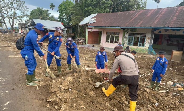 Pantauan di lokasi, para personel Brimob dikerahkan membersihkan lumpur, sampah, dan sisa material banjir di area sekitar rumah warga dan sepanjang jalan. Kegiatan ini dilakukan sebagai upaya untuk memperbaiki akses sarana dan prasarana, agar warga dapat kembali beraktivitas normal.