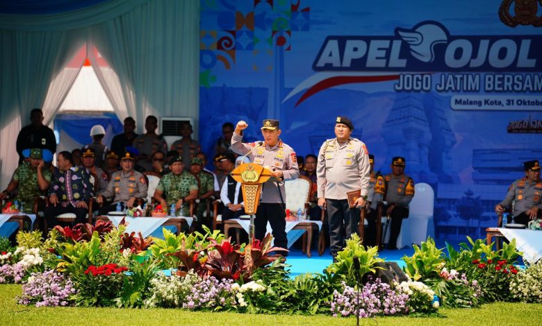 Jatim, mimbar.co.id – Kapolri Jenderal Listyo Sigit Prabowo memimpin Apel Ojek Online (Ojol) Kamtibmas yang diikuti sebanyak 4.425 orang di Stadion Gajayana, Malang, Jawa Timur, Jumat, 31 Oktober 2025. Hal ini komitmen bersama antara Polri dan para driver daring untuk menjaga situasi tetap kondusif.