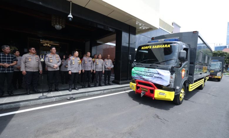 Surabaya, mimbar.co.id – Polda Jawa Timur memberangkatkan bantuan kemanusiaan untuk para pengungsi dampak erupsi dan Awan Panas Guguran (APG) Gunung Semeru.