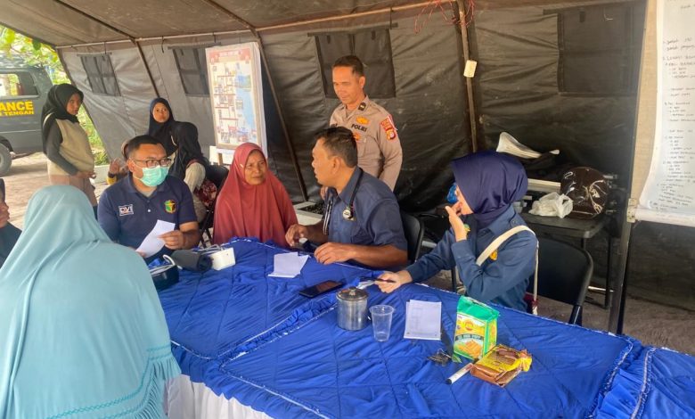 “Kami hadir memberikan pelayanan kesehatan, konsultasi, memberi semangat dan pengobatan gratis kepada masyarakat korban bencana alam,” ujar Kapolres.