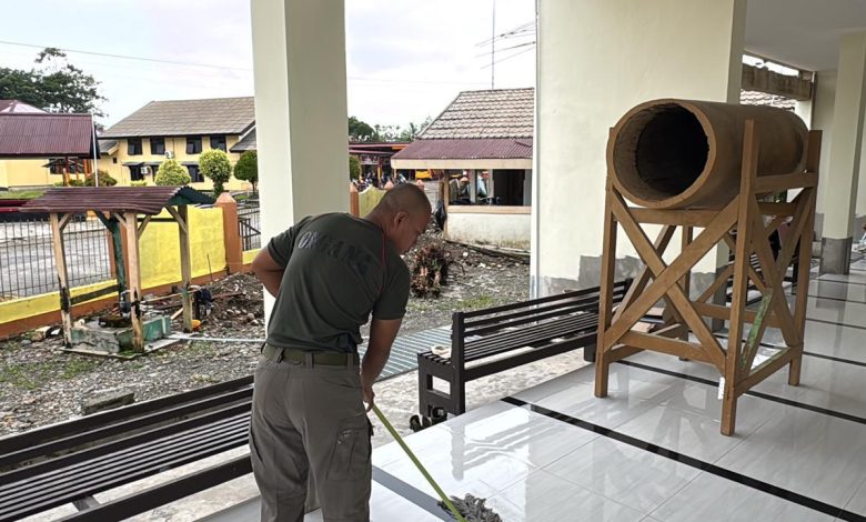 Personel Operasi Damai Cartenz 2026 bergotong royong membersihkan area masjid bersama pengurus dan warga sekitar. Kegiatan ini sekaligus menjadi sarana dialog dan sosialisasi, memperkuat komunikasi antara aparat keamanan dan masyarakat guna menciptakan situasi yang aman dan damai.