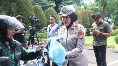 Jumat Peduli Polda Metro Jaya, Ojol Dapat Pesan Kamtibmas dari Polwan