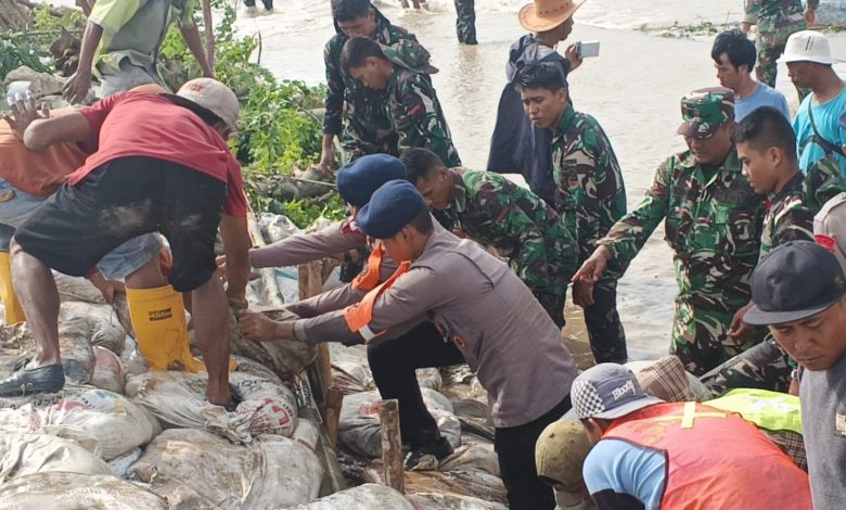 Tanggul Jebol di Muara Gembong, Brimob Bersama TNI dan Warga Bahu-Membahu Lakukan Penanganan