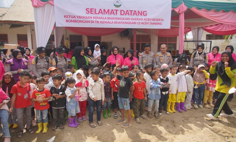 Hadir dalam kegiatan tersebut, jajaran Bhayangkari Polda Aceh yang turut memberikan dukungan moral serta bantuan logistik sebagai bentuk nyata kepedulian institusi terhadap pemulihan masyarakat, khususnya anak-anak, di wilayah terdampak.
